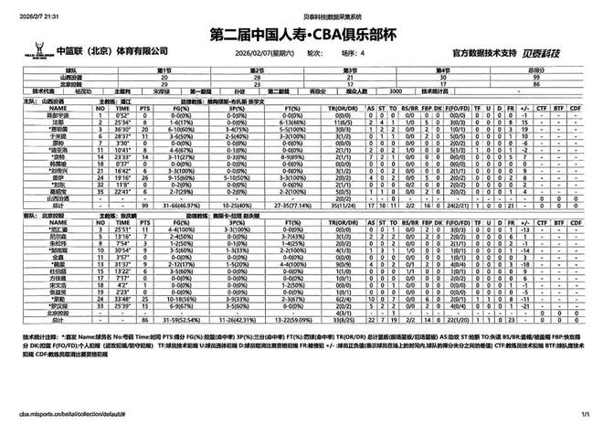 北京時間2026年2月7日19:30,第二屆中國人壽·CBA俱樂部杯決賽階段繼續(xù)進行,山西汾酒在伊泰·呼和浩特內(nèi)蒙古體育館,迎來與北京控股的1/4決賽對決。本場比賽,山西隊上半場處理球急躁,防守端出現(xiàn)太多無畏的犯規(guī),中場調(diào)整后,全隊在攻防兩端均有明顯改善,進攻明確,防守積極,并且在末節(jié)展現(xiàn)出足夠韌勁,最終取得勝利,全場比賽結(jié)束,山西汾酒99:86戰(zhàn)勝北京控股,成功晉級四強。