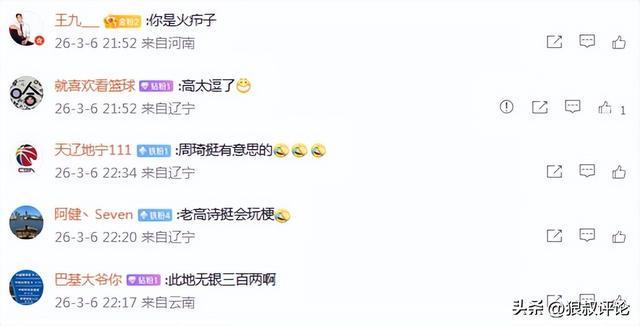 北京時間3月6日,CBA全明星周末,北區(qū)明星隊全體合照的時間段,周琦姍姍來遲未能站好位置,高詩巖發(fā)出“死亡”調(diào)侃為“膿包”。