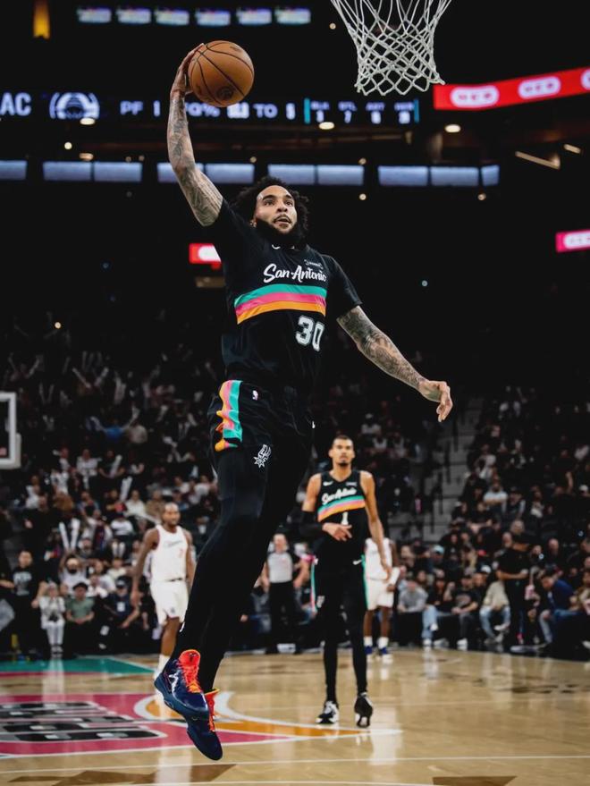 馬刺兩個首發(fā)后衛(wèi),上半場如同夢游:卡斯?fàn)?中1,福克斯6中1。這哥倆上半場合計11中2,僅得5分3失誤。還得靠文班,第二節(jié)他依然只打了5分鐘。上半場出戰(zhàn)10分鐘,13中5拿到14分6籃板1助攻1搶斷1蓋帽,正負(fù)值-2。