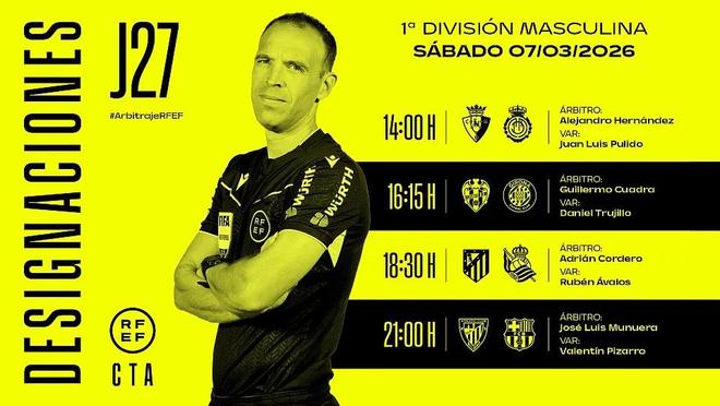 西班牙足協(xié)官方公布了當?shù)貢r間周六4場西甲比賽的裁判安排,何塞-穆努埃拉將執(zhí)法巴薩客戰(zhàn)畢爾巴鄂競技。