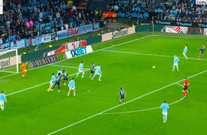 巴爾韋德在禁區(qū)外拔腳怒射,皮球不偏不倚,剛好砸在塞爾塔后衛(wèi)(巧了,正是前巴薩球員)馬科斯·阿隆索的身上!皮球劃出一道詭異的折射弧線,門將根本反應(yīng)不及,直接鉆入網(wǎng)窩!2-1!